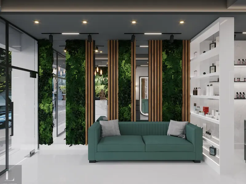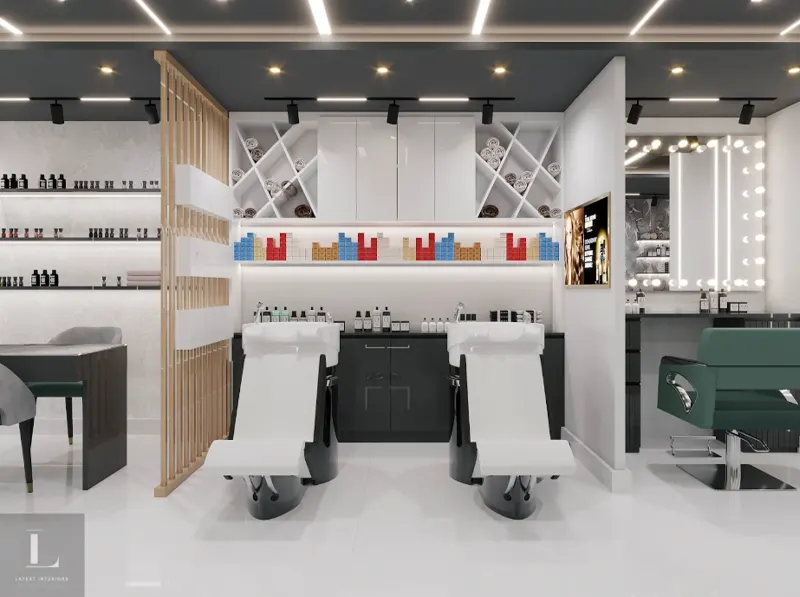 • Acoustic Control: Soft acoustic materials absorb echoing hairdryer noises efficiently. Brilliant salon interior design ideas include dedicated quiet zones.
